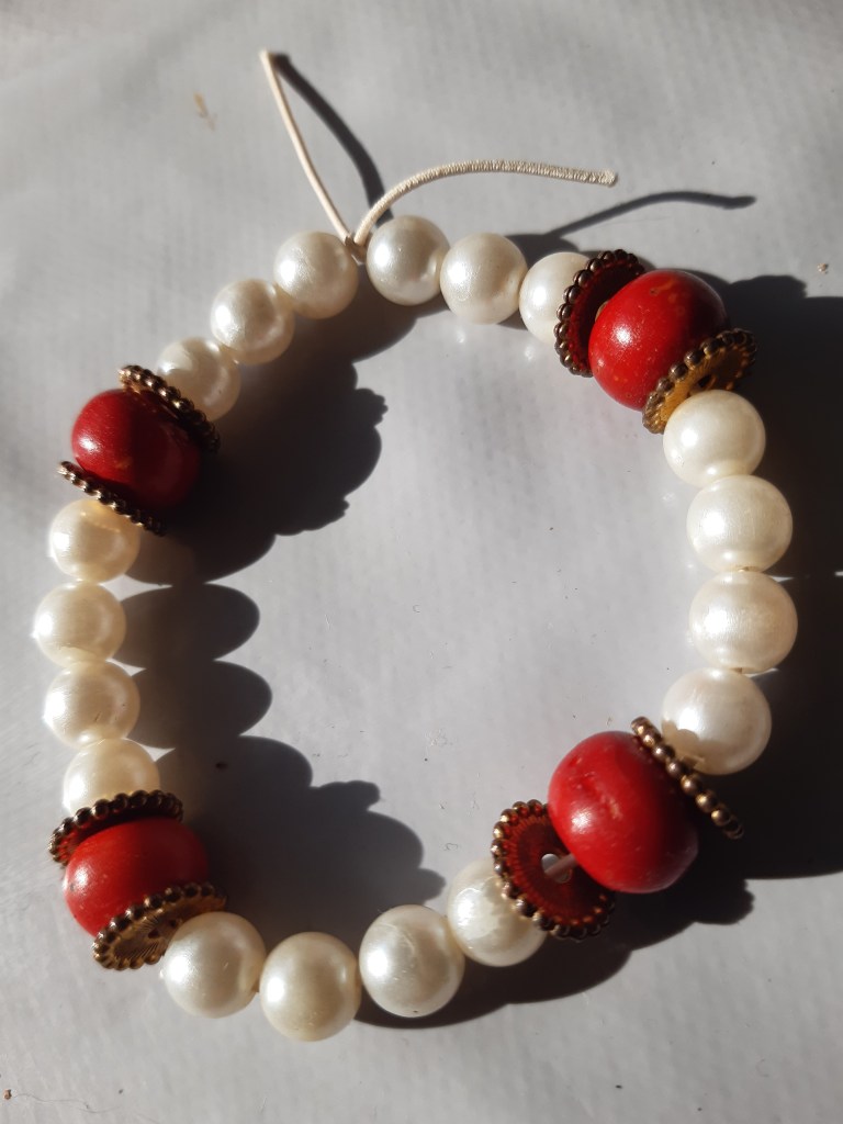 Een jaar geleden.Het ging minder met me. Ik was opgenomen op de afdeling van een zorgcentrum. Bij creatieve therapie vond ik een bak met kralen. Ik was verkocht. Uren kon ik mij vermaken met de bezigheid van armbandjes en kettinkjes. Het was een heuze kralenparade in mijn sobere kamer.